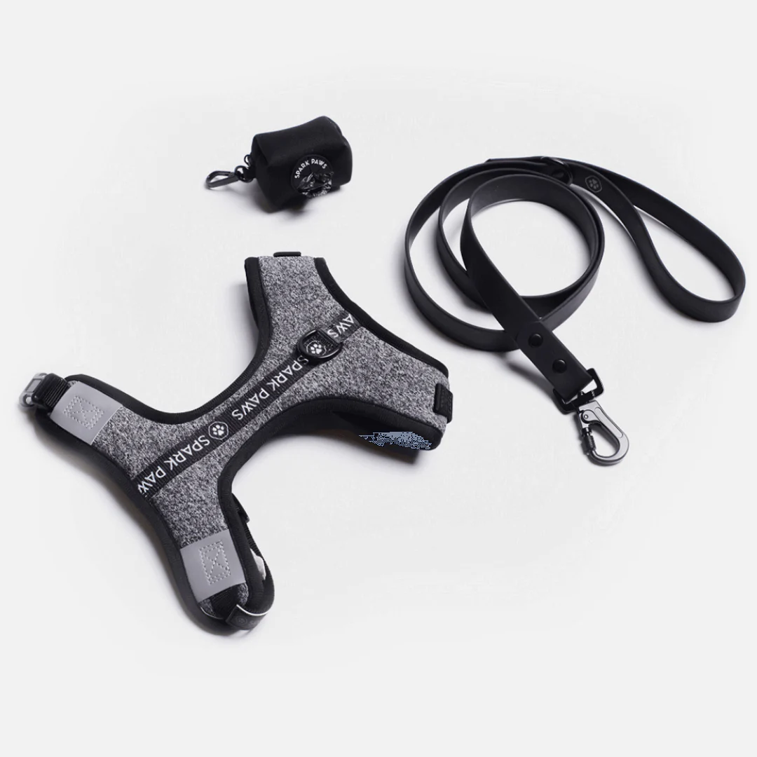 Upgrade uw wandelingen met onze harnasset geïnspireerd op prestatiekleding. Elke set wordt geleverd met een comfortabele Gewatteerd Harnas, een Waterdichte Lijn, en een bijpassende Poepzakhouder.