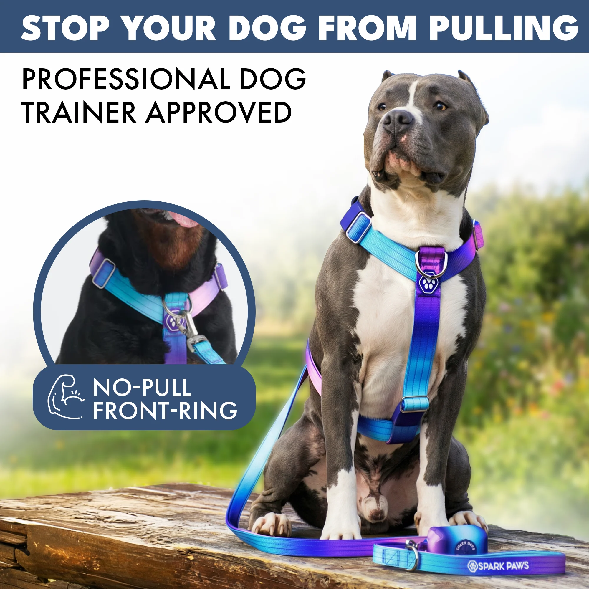 - 3-Way adjustable - Harness is adjustable around the neck/torso and waist area, can comfortable fit broad-chested breeds
