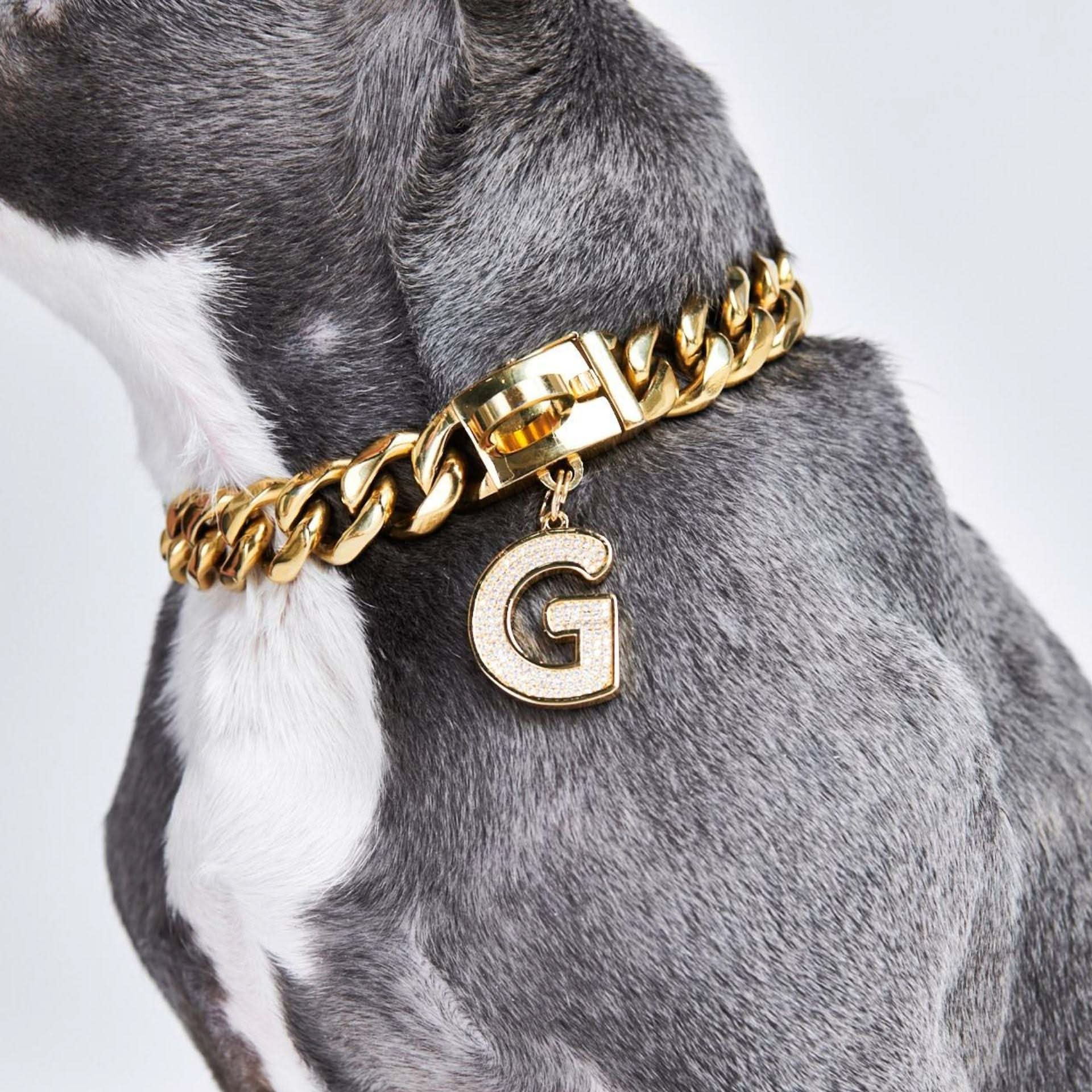 Match het met een Gold Cuban Dog Collar voor de complete look. Gouden halsband geschikt voor nekomtrekmaten: