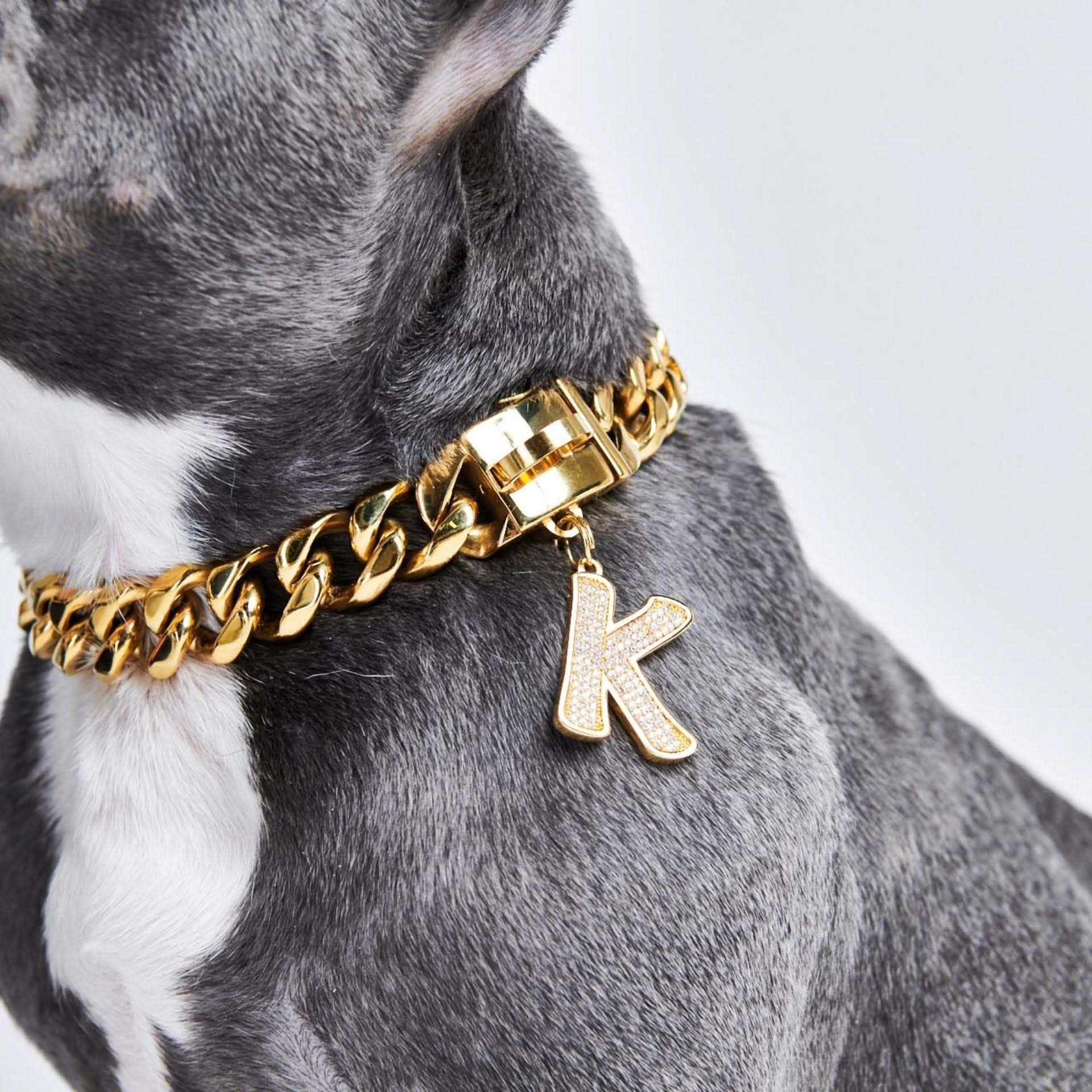 Pas de halsband van je hond aan met dit luxueuze sieradenstuk. De letterhanger is ontworpen met comfort en veiligheid in gedachten, perfect voor dagelijks gebruik. De 18k goudplating en CZ-diamanten zullen licht vangen vanuit alle hoeken, waardoor de nek van je hond de hele dag en nacht straalt.